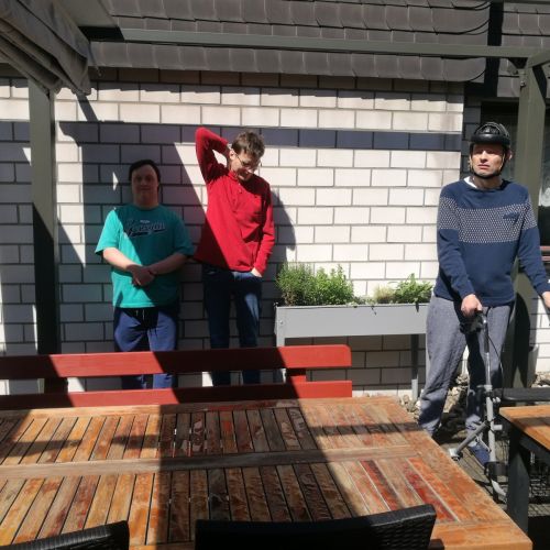 Wahrscheinlich werden die Kollegen in der Lebenshilfe langsam langweilig … Wir peilen zurzeit ganz vorsichtig den 18. Mai 2020 an und die Werkstätten versuchen auch neue Lösungen zu organisieren. Zum Beispiel ein gemeinsamer Standort für alle Bewohner der Lebenshilfe. Wir hoffen alle sehr, dass dieser langsame Start, und dies wahrscheinlich auch noch nicht für alle, gelingt und alle weiterhin gesund bleiben. Bis dahin werden hier weiterhin alle alles dafür tun, die gute Stimmung und die Gesundheit zu erhalten. Es gibt noch einiges im Garten zu tun und es sind auch nicht alle Spiele ausgereizt.