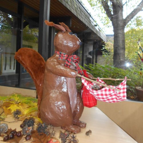 Da wir täglich Eichhörnchen auf unserem Außengelände beobachten können, kam uns die Idee selbst ein Eichhörnchen gemeinsam mit den Kindern herzustellen.