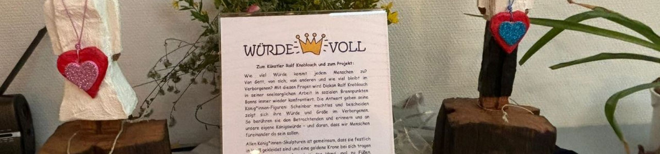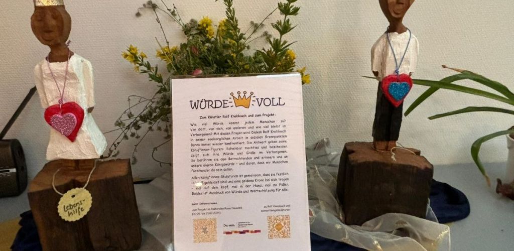 Im Rahmen der Ausstellung „Würde Voll“ waren 15 Könige und Königinnen des Diakons und Holzbildhauers Ralf Knoblauch bis zum 21.07.2024 im Pastoralen Raum Neuwied unterwegs.