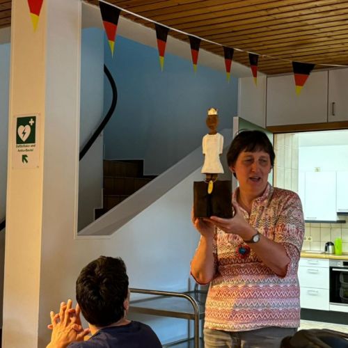 Am Montag, den 1. Juli 2024 wurden "König Martin von Nebenan" und "Königin Margarethe von Gegenüber" feierlich bei Kaffee und Kuchen in der Lebenshilfe Neuwied begrüßt und bei der Vorstellung ihre Bedeutung in einem Gespräch mit den Bewohnern erörtert. Es war ein voller Erfolg.